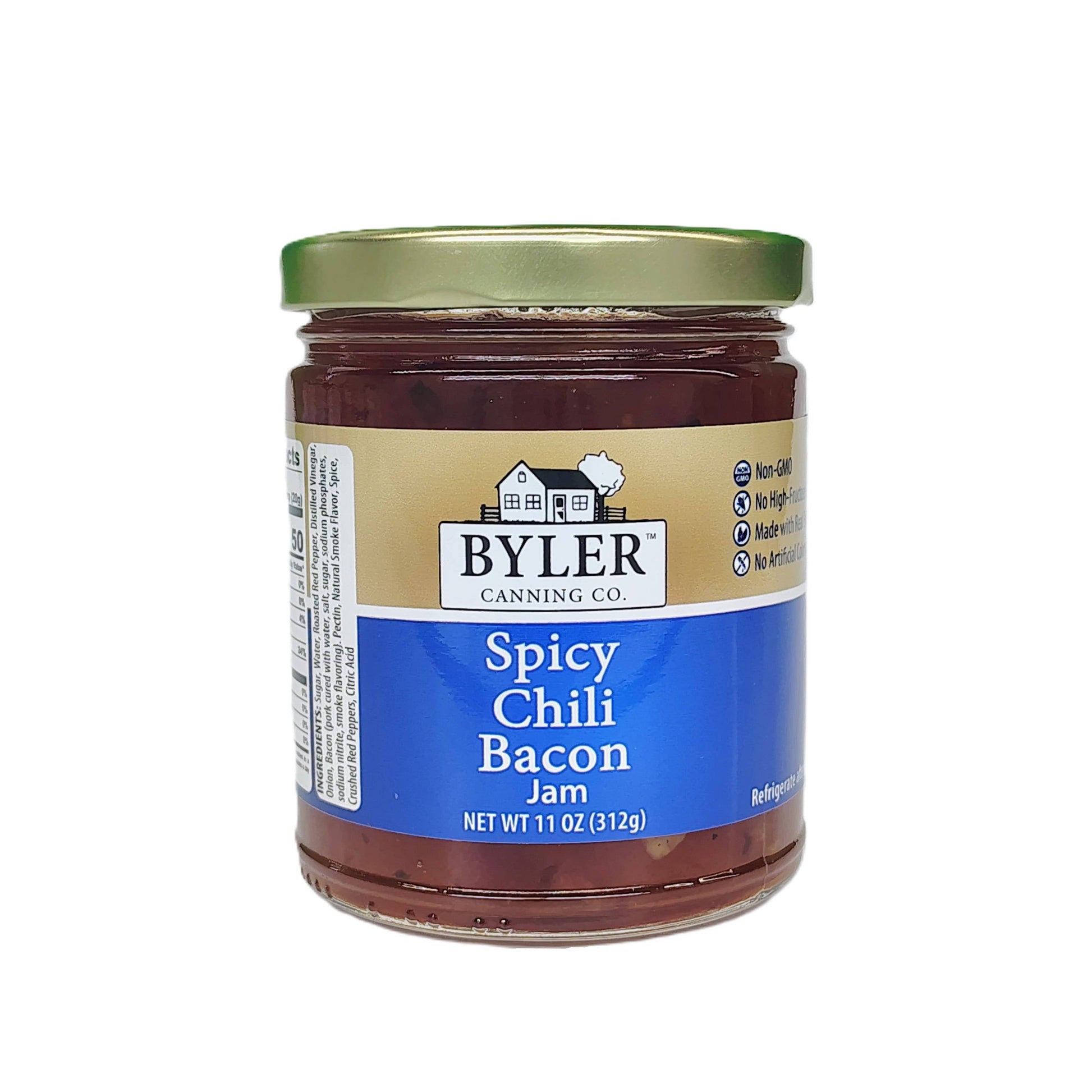 Turn up the heat with Bylers Spicy Chili Bacon Jam, a fiery blend of crispy bacon, sweet onions, and bold chili peppers. It delivers the perfect balance of smoky richness and spicy kick, making it the ultimate topping for nachos or a flavorful addition to tacos. For those who like it hot and delicious.
