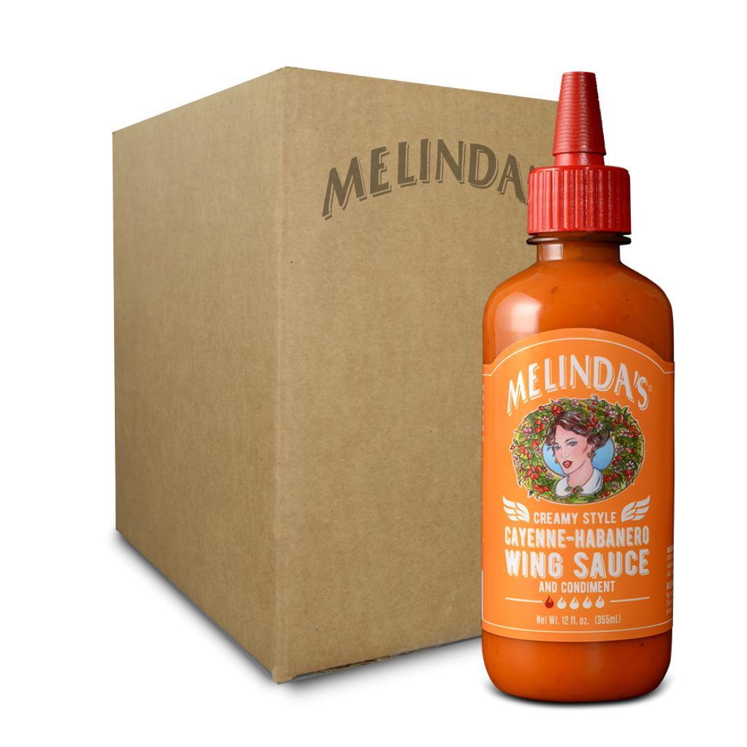 Melinda’s Creamy Cayenne – Habanero. Our original wing sauce because, yes, the world does need a better wing sauce. We blended our signature Habaneros with a bit of Cayenne to make the most irresistibly spicy and tangy sauce you have ever slathered on a chicken wing. Made the Melinda’s way: with whole, fresh ingredients and the best peppers on the planet for people who care about those kinds of things. Enjoy on wings, chicken, firecracker shrimp, wraps, sandwiches and on practically everything.