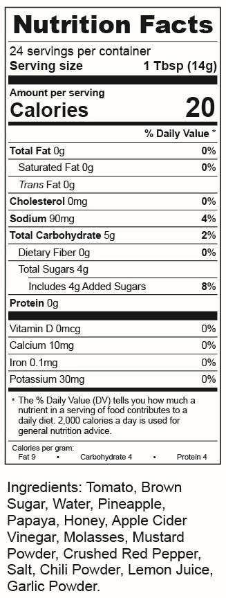If we could magically bottle up the flavors of some tropical island, we imagine it would taste a whole lot like our Pineapple Papaya sauce. It’s subtly sweet, uniquely tangy, and has just the right amount of spice, so as to not set your taste buds ablaze like a tiki torch. One taste and you’ll be stockpiling it like you’re on a desert island—instead of the tropical kind.
