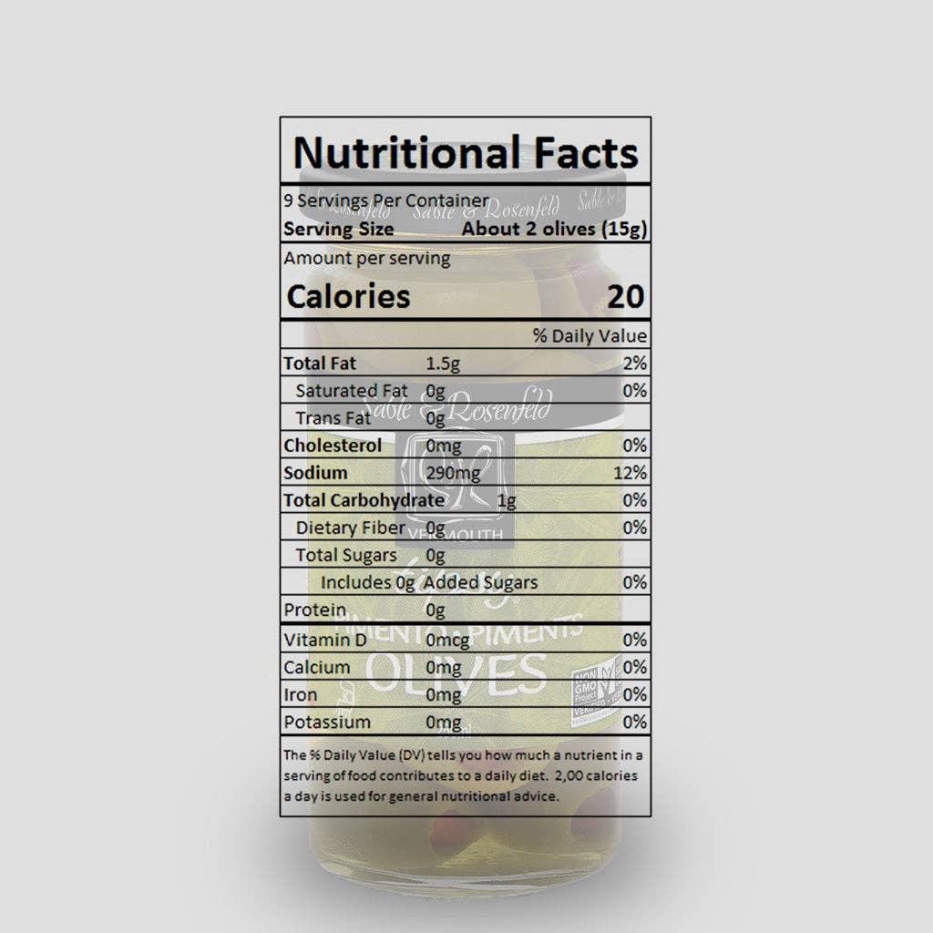 A must for the perfect Martini or just as good nibbled on their own. Tipsy Olives are bathed in French vermouth. No need to add vermouth to your martini. Colossal olives, firm and crunchy.