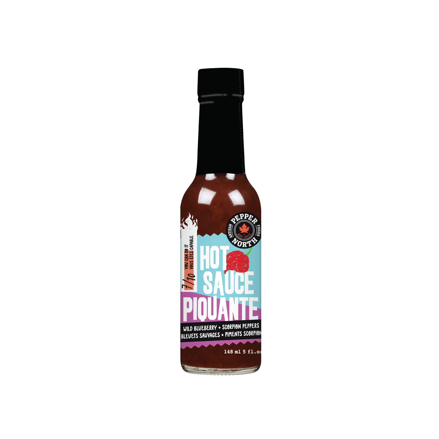 Blending the sweet citrusy notes of scorpion peppers with tangy wild blueberries, rich honey and a touch of mellow coconut water. No scorpions were involved in the making of this sauce.